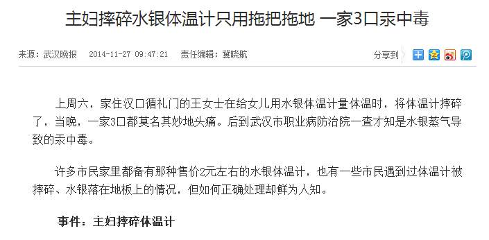 用抹布,拖把这种错误的方式处理,让汞浓度上升,这才是全家中毒真正原因。