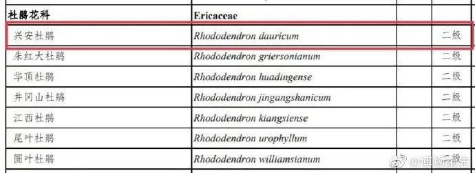 在这种背景下,2021年9月,国家林草局和农业农村部新颁布的《国家重点保护野生植物名录》中,已将兴安杜鹃列为国家二级重点保护植物。