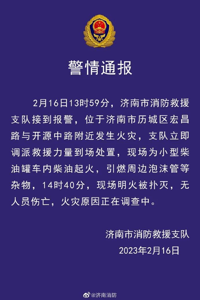 2月16日,一则“济南东站高铁着火”的消息在抖音等网络社交渠道流传,引发网民关注和讨论。济南消防发布警情通报称,为小型柴油罐车内柴油起火,引燃周边泡沫管等杂物所致,并非高铁着火。