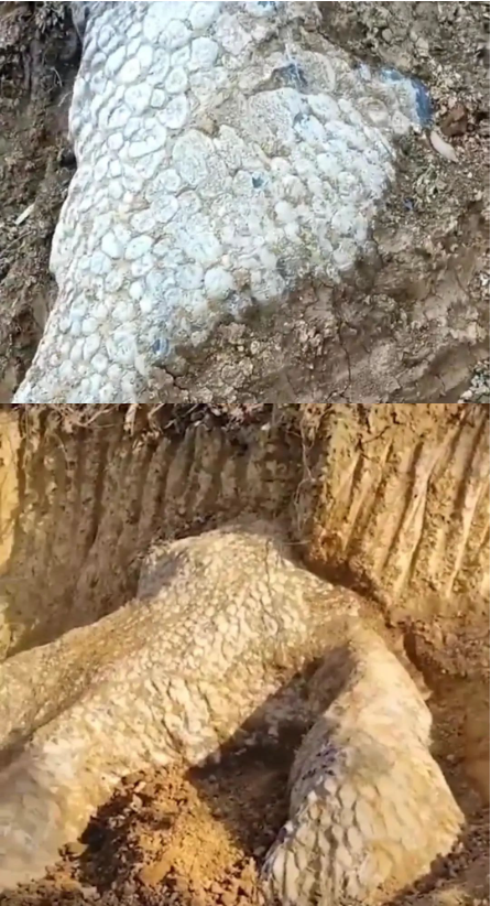 近日,一则湖南武冈挖出“龙身化石”的短视频引爆网络,事发地址为武冈市马坪乡,视频中挖掘机挖出一块形状似龙爪的“奇石”,石头表面呈鳞片纹理,非常地震撼,现场引来不少村民围观。网络上也是一片沸腾,有网友猜测是“恐龙化石”“古代某位帝王守护墓穴的石兽龙”,有人呼吁“停止挖掘,别破坏了风水”,还有网友表示“别太惊喜,可能就是块普通石头”……