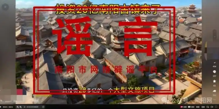 来源标题:辟谣!网传“南阳古镇获批20亿元投资”为谣言