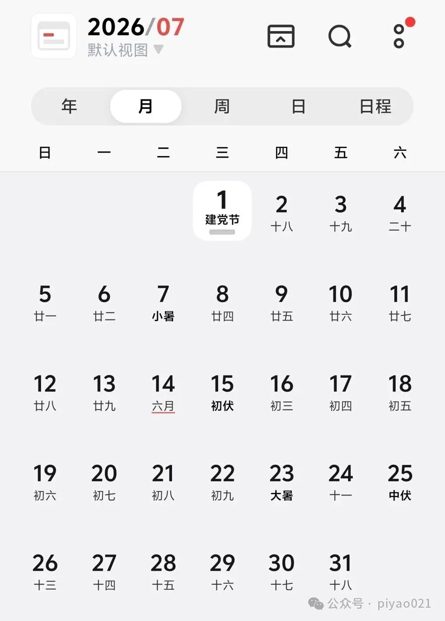 今年7月有5个周三、周四、周五(手机截屏)
