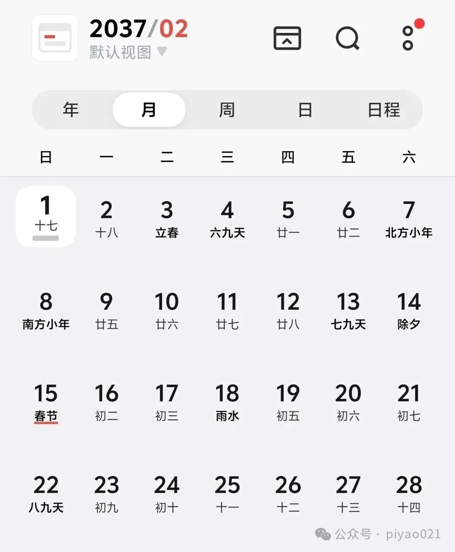 2037年、2043年的2月同样“方方正正”