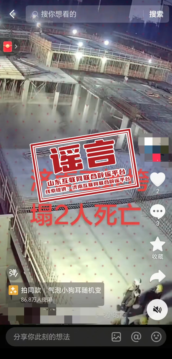 来源标题:山东济南工地垮塌致2人死亡?系AI伪造
