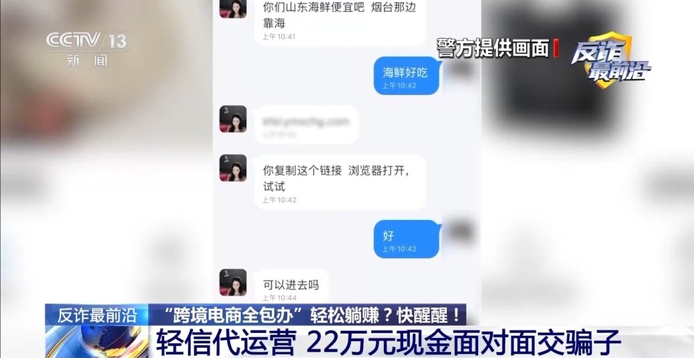 直击反诈一线,拆穿最新电诈骗局,首先进入“反诈最前沿”。家住山东烟台的王女士,在网上刷到了一家“跨境电商”代运营公司,这家公司声称“动动手指”即可成为店主,货源、运输、店铺运营全部由公司包办。王女士信以为真,正要把22万元现金交给骗子的时候,民警紧急拦了下来。